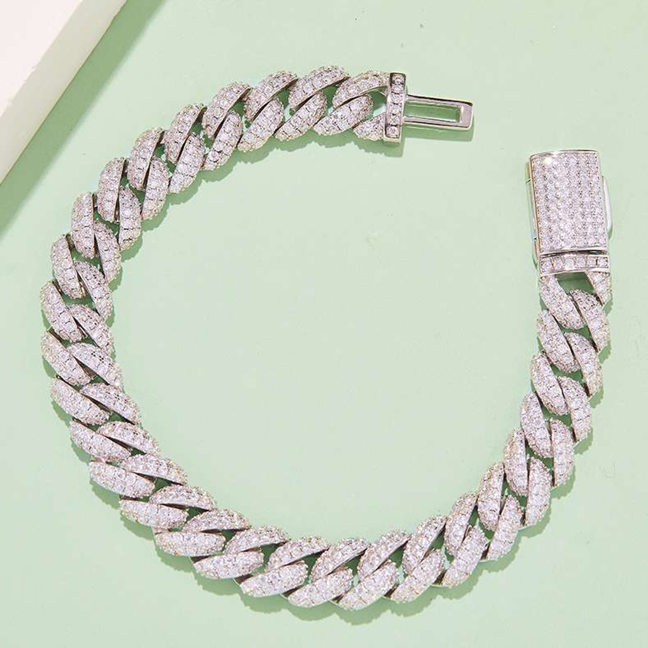 This moissanite cuban link bracelet features an extremely durable box clasp, which is specially designed to never break or fall off when You are wearing it.